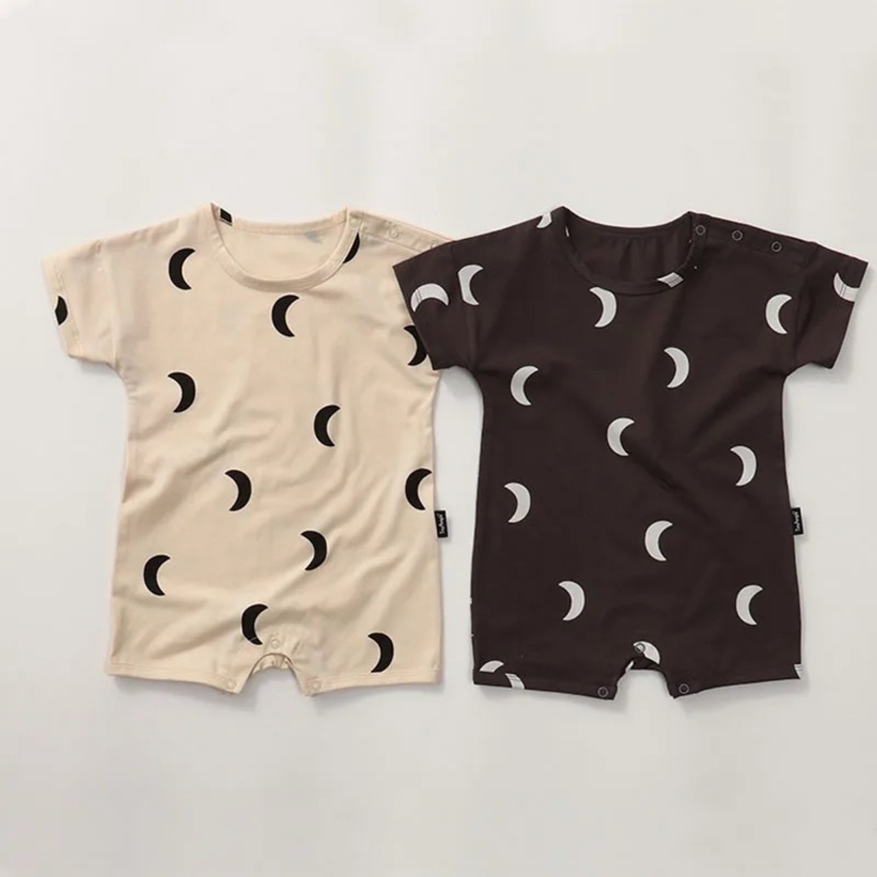 遊び心溢れるデザインのmoon rompers!可愛い柄のロンパースです。素材には肌触りの良い天然素材を採用しているので、子供の肌にもやさしい一枚です。