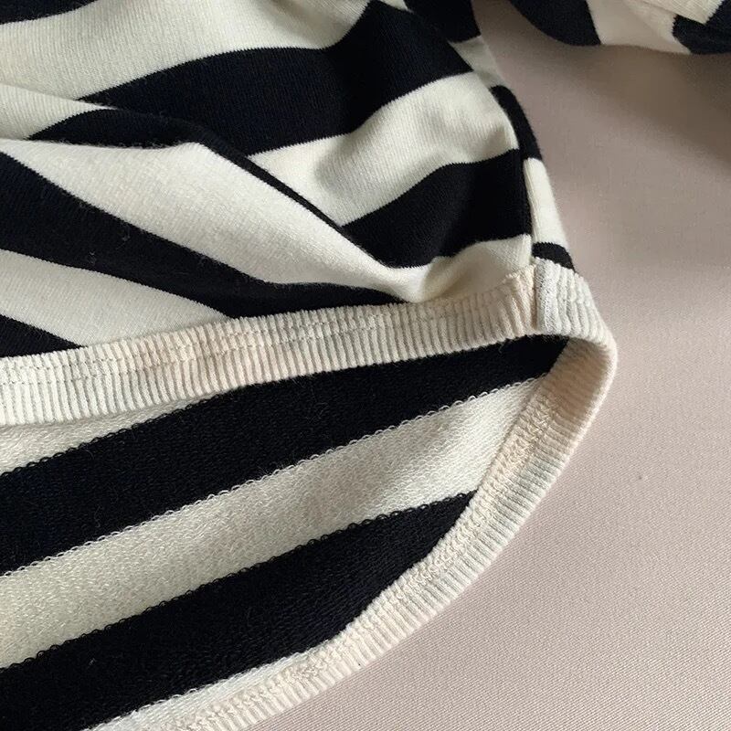 ストライプ長袖Tシャツ、お子様のおしゃれの定番アイテムです!肌触りの良い素材を使用しており、お子様の快適な着心地を実現しています。