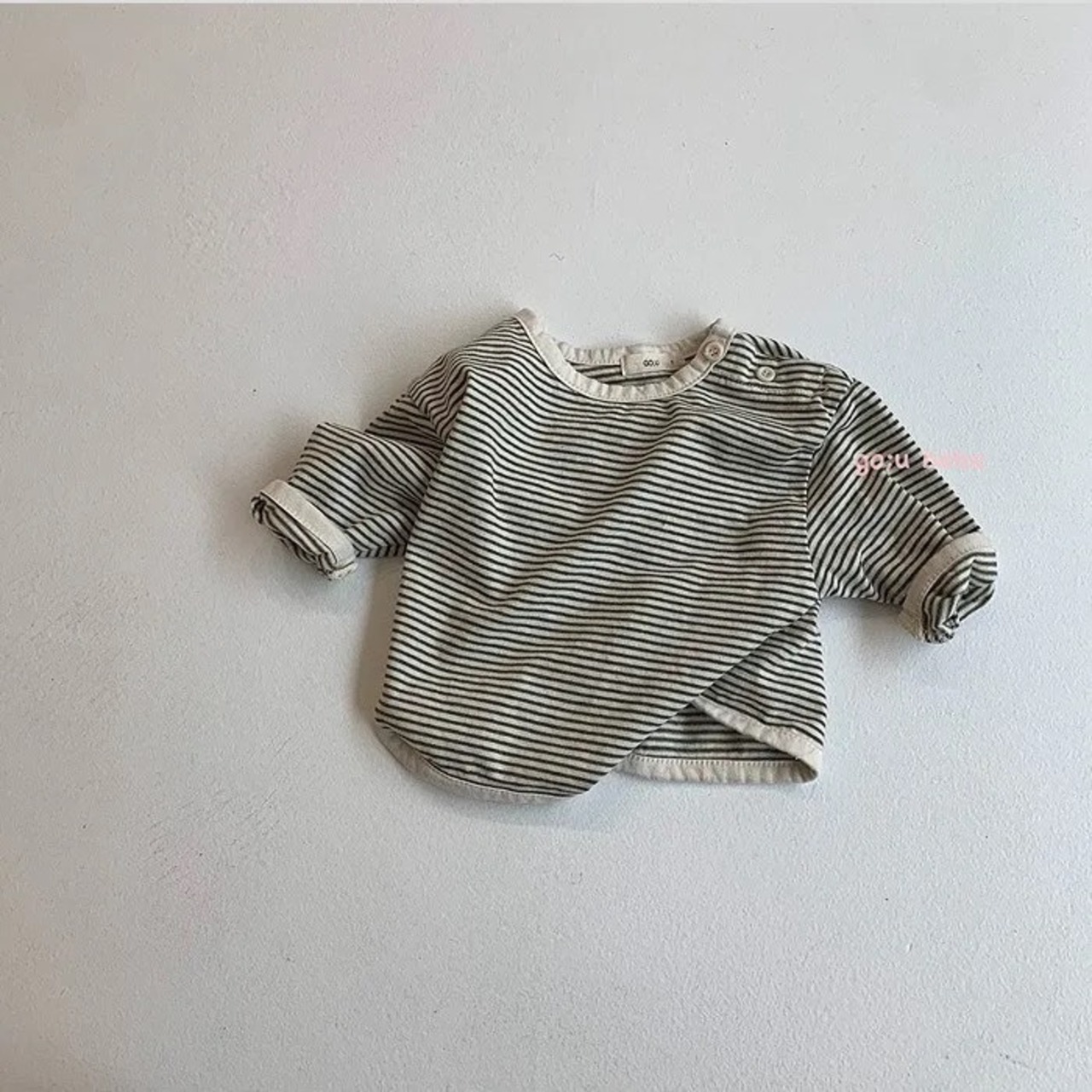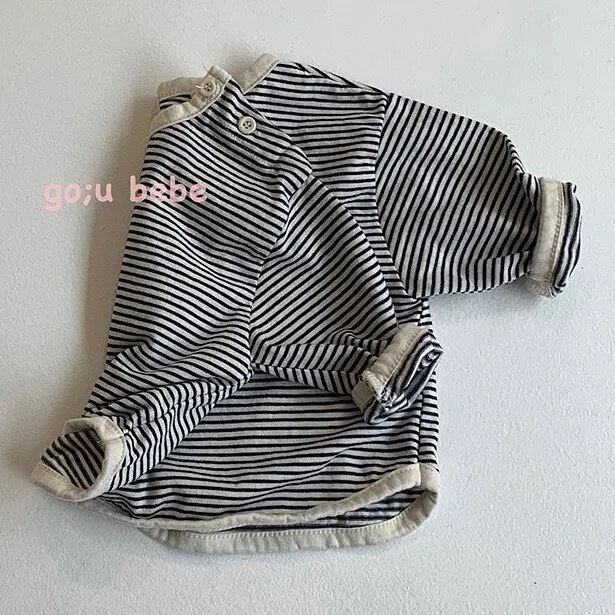 可愛いストライプが印象的な長袖シャツ。デザインも色も可愛いので、おしゃれなコーディネートが楽しめます。首元にあるボタンもワンポイントになって可愛いお洋服です。カラーバリエーションからお気に入りの一枚を見つけてください。